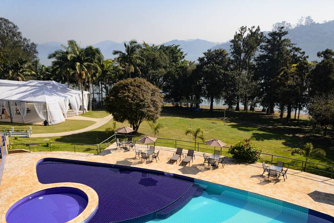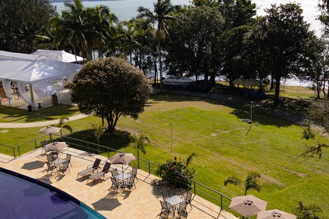 Com vista para o lago e rodeado pela natureza, este espaço é perfeito para a cerimônia do casamento dos sonhos com capacidade para 80 convidados.